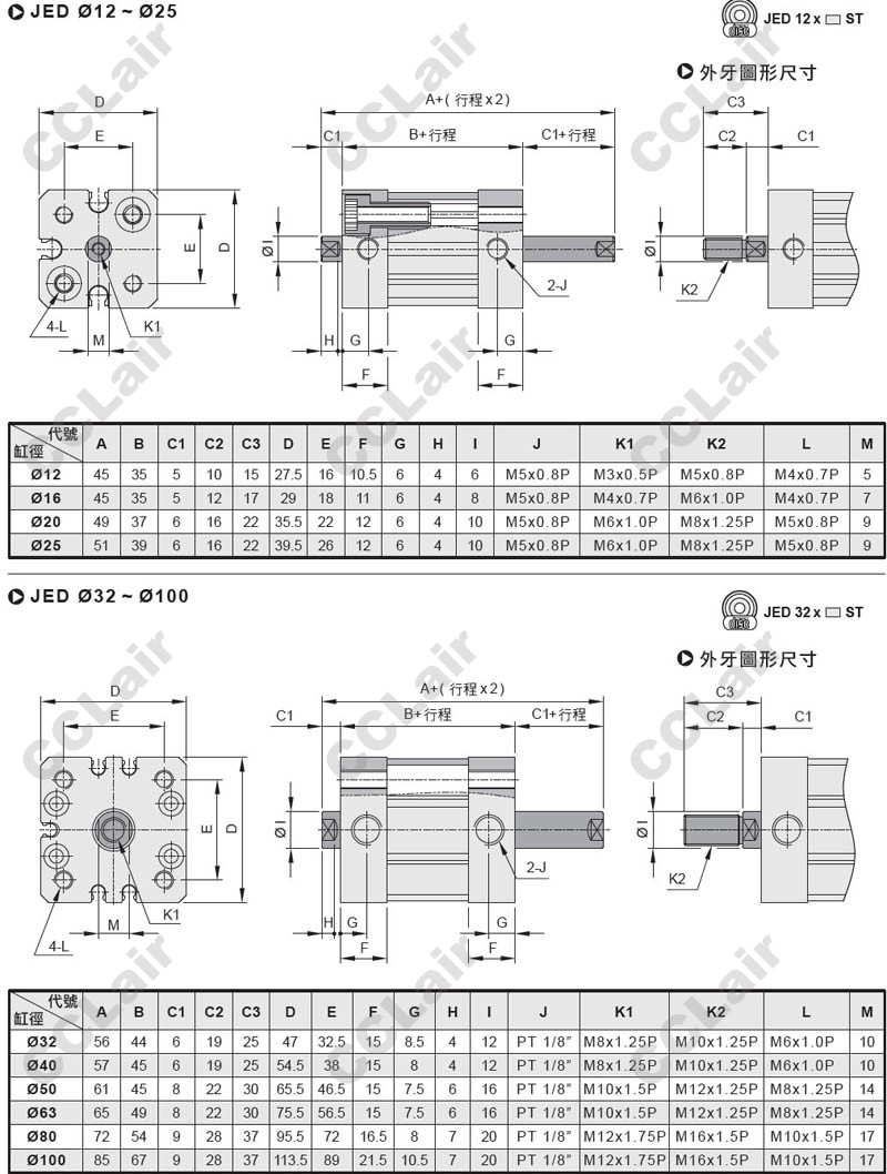 JE12*25-FA-Y-SD2,JE12*50-FA-Y-SD2,JE12*75-FA-Y-SD2,JE12*100-FA-Y-SD2,JE16*25-FA-Y-SD2,緊湊型氣缸