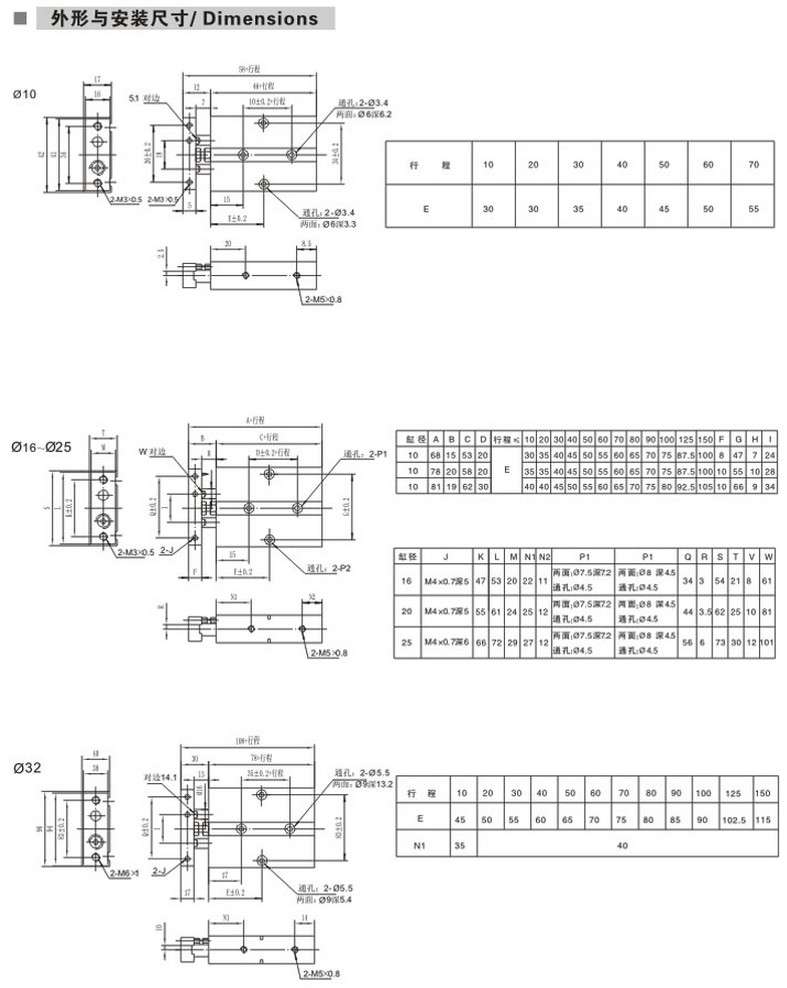 ECXSM10-10,ECXSM16-20,ECXSM20-25,ECXSM25-30,ECXSM10-50,ECXSM16-70,平行雙桿氣缸