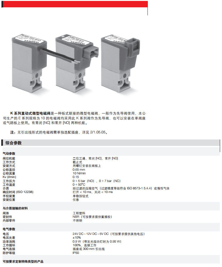 K000-003-K11,K001-023-KC2,K002-423-FH1,K000-303-FG2,K000-603-K22,camozzi直動(dòng)式微型電磁閥