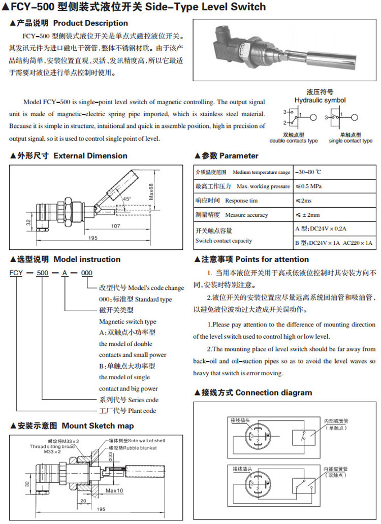 FCY-500,側(cè)裝式液位開關(guān)