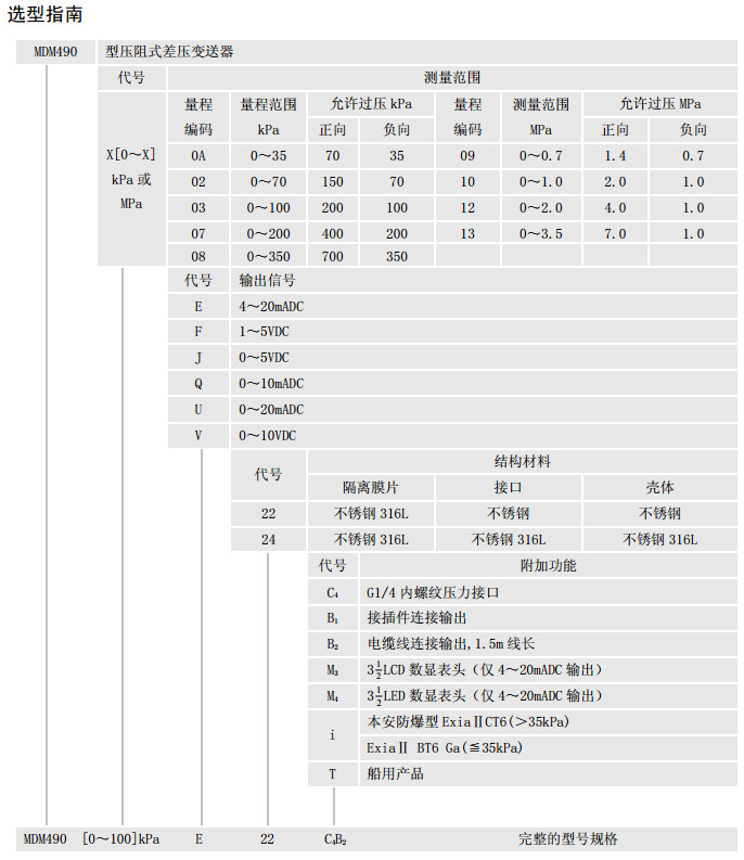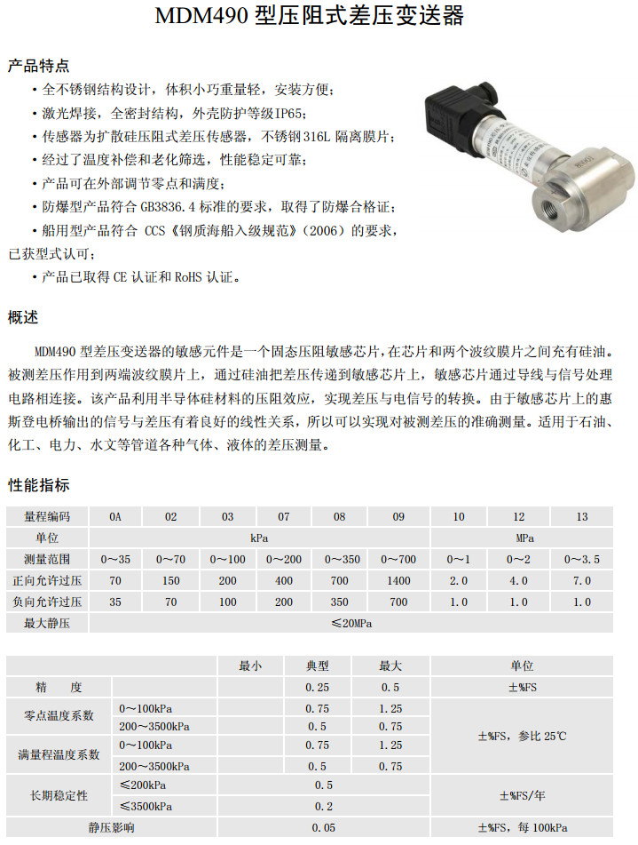 MDM490-OA,MDM490-02,MDM490-03,MDM490-07,MDM490-08,MDM490-09,MDM490-10,壓阻式差壓變送器 |