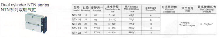 NTN10,NTN16,NTN20,NTN25,NTN32,雙軸氣缸