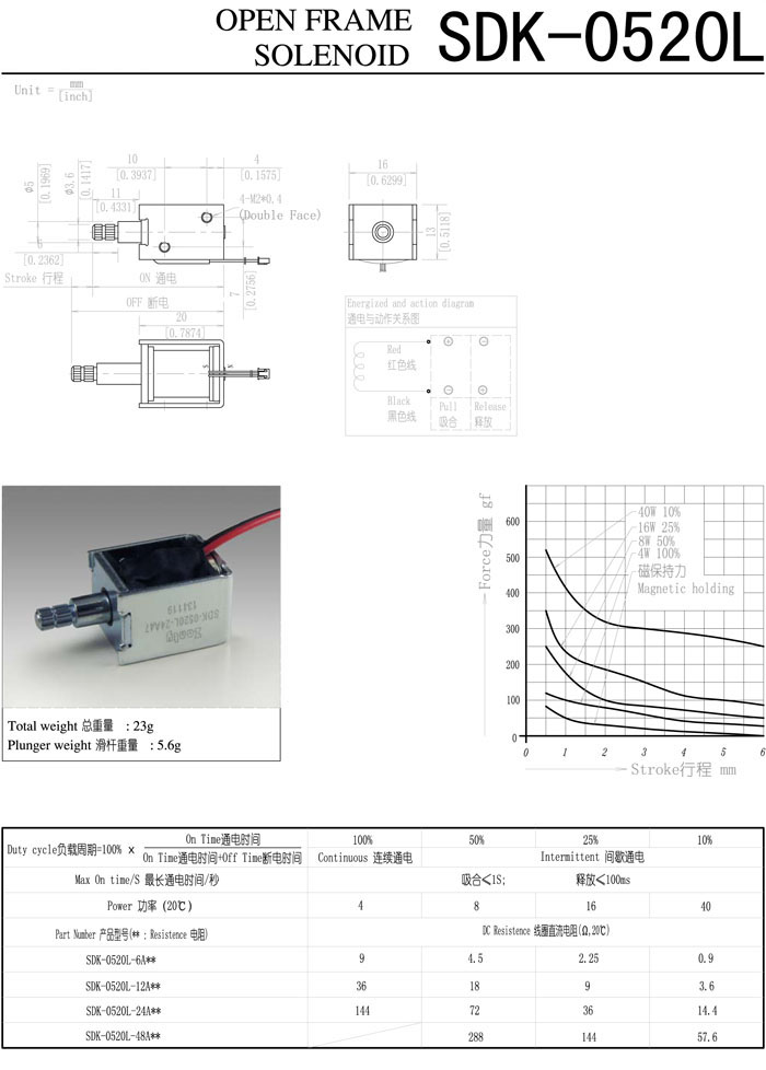 SDK-0520L-6A,SDK-0520L-12A,SDK-0520L-24A,SDK-0520L-48A,直動電磁鐵 |