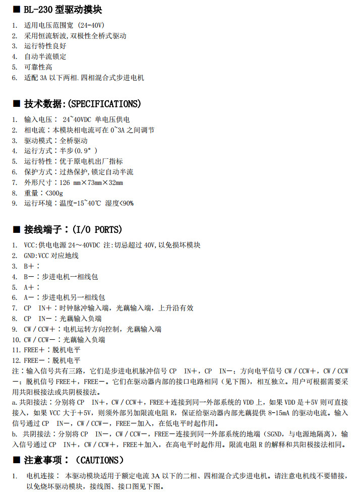 BL-230,步進(jìn)電機(jī)驅(qū)動(dòng)器