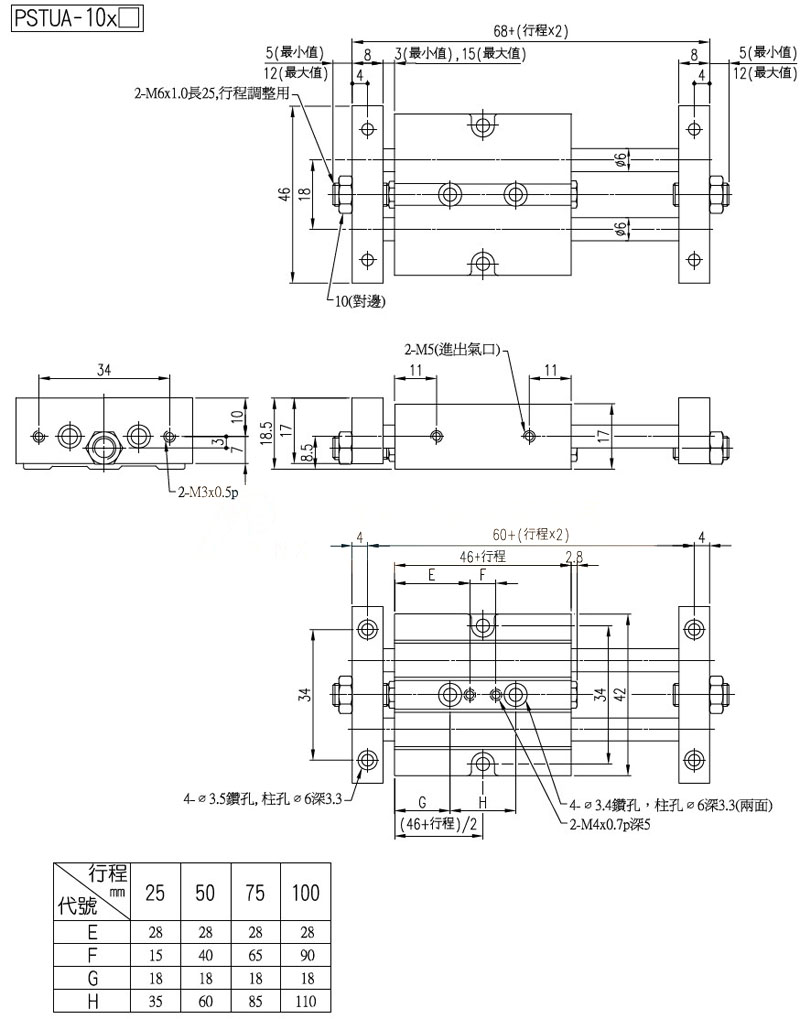 PSTUA-16,PSTUA-25,PSTUA-32,PSTMA-16,PSTMA-20,PSTMA-32,panix滑臺氣缸