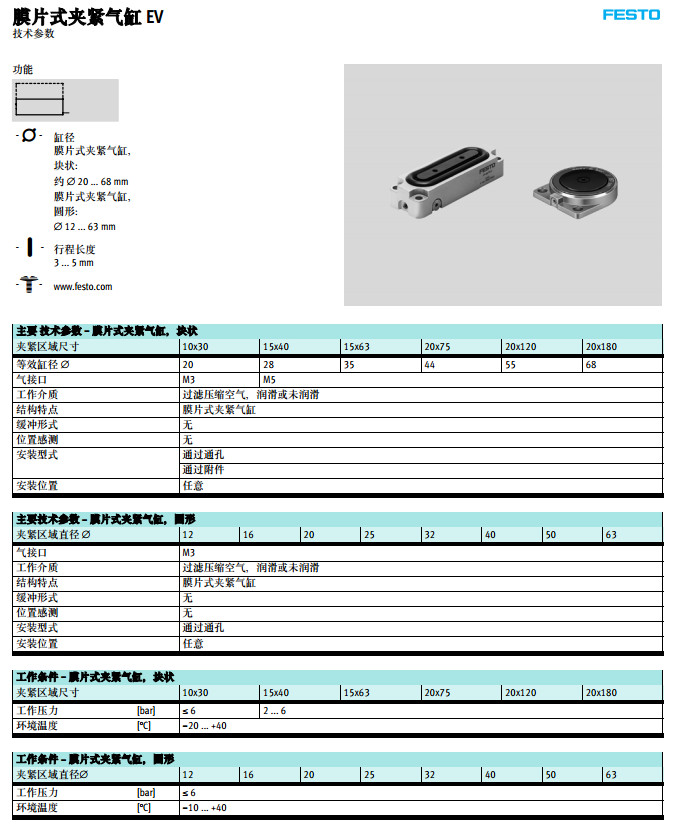 EV-10*30,EV-15*40,EV-15*63,EV-20*75,EV-12,EV-20,EV-32,EV-40,festo膜片式夾緊氣缸 |