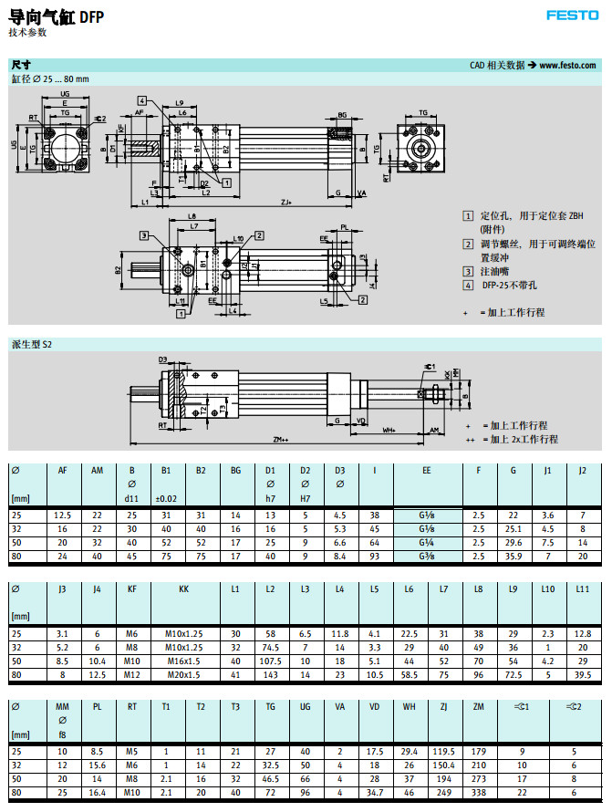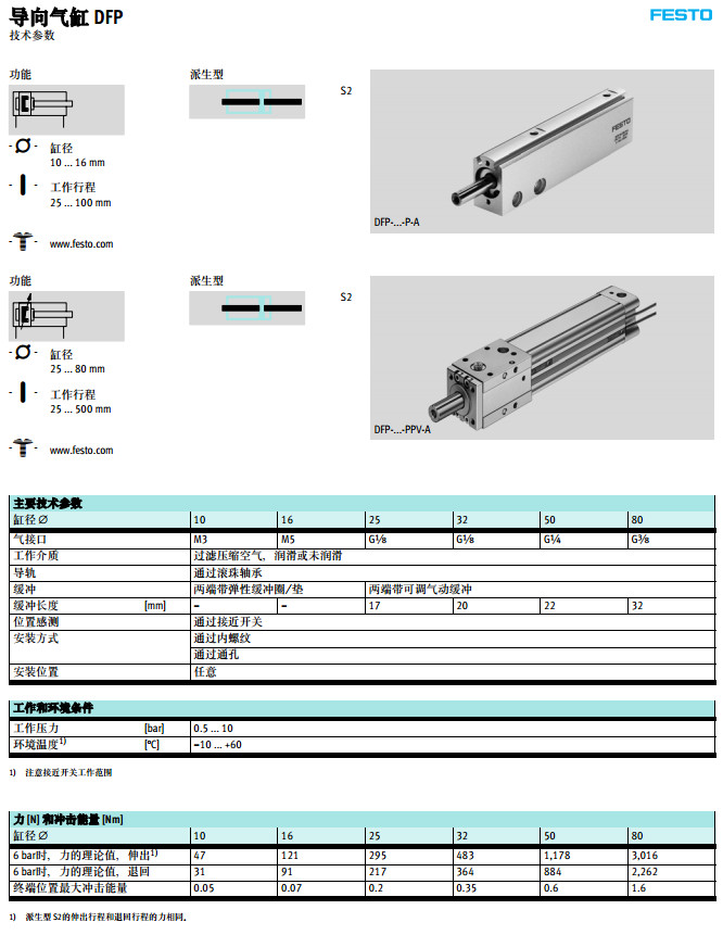 DFP-10,DFP-16,DFP-25,DFP-32,DFP-50,DFP-80,festo導向氣缸
