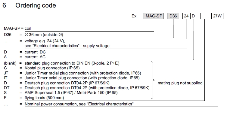 MAG-SPD36-24D-27W,MAG-SPD36-24D-DT-27W,MAG-SPD36-24A-JT-27W,Bucher電磁閥線圈
