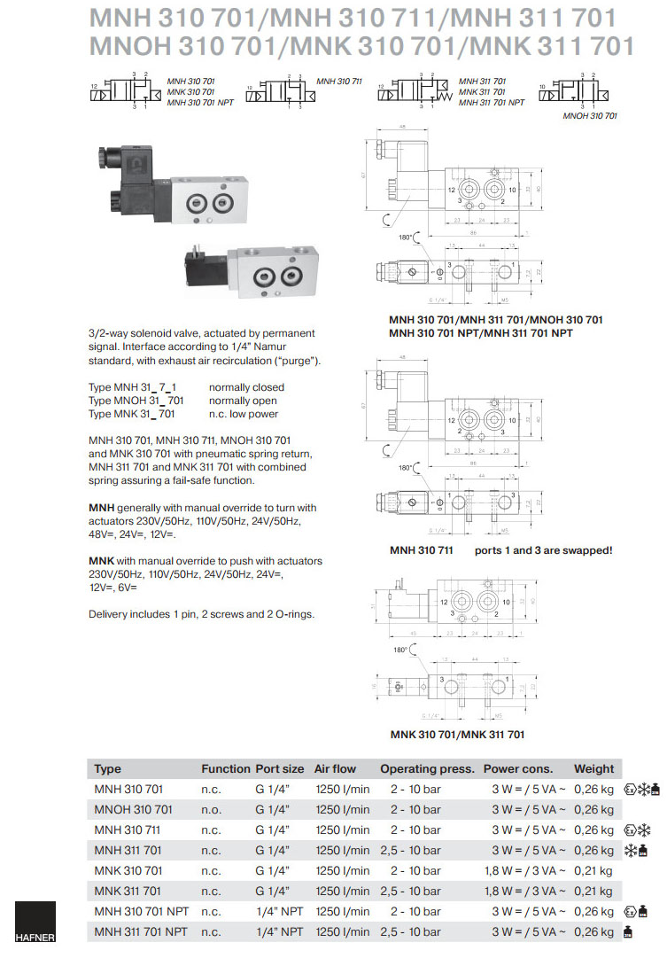 MNH310701,MNOH310701,MNH310711,MNH311701,MNK310701,MNK311701,MNH310701NPT,MNH311701NPT,Hafner電磁閥 |