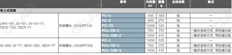 PC-3,PC-2,PC-1S,PCL-7B-2,PCL-10B-2,PC-1,PCL-7B-3,PCL-10B-3,吸上式容器