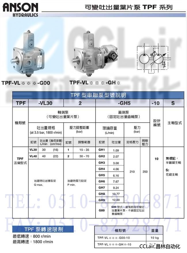 TPF-VL401-GH2-10S,TPF-VL402-GH2-10S,TPF-VL301-GH3-10S,TPF-VL302-GH3-10S,可變吐出葉片泵