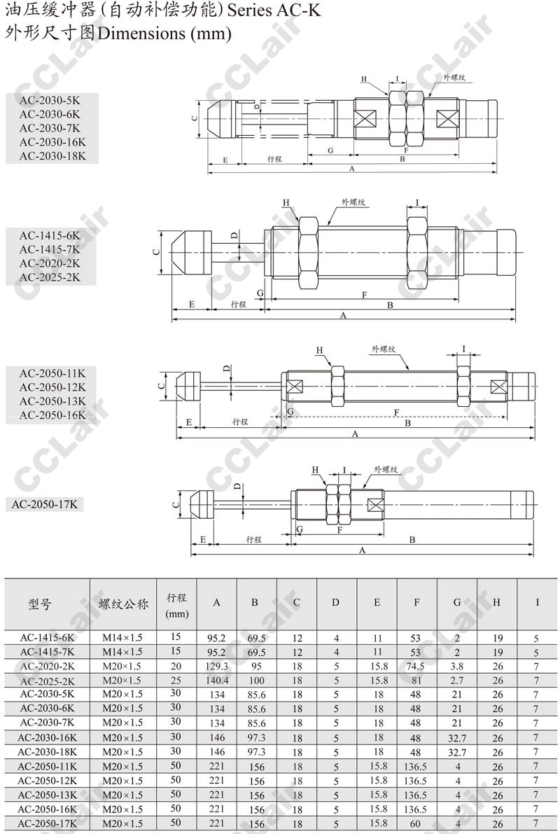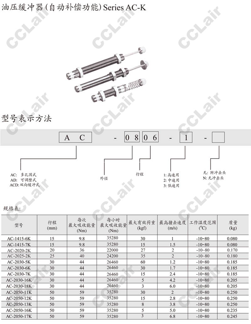 詳細(xì)信息 AC-1415-6K,AC-1415-7K,AC-2020-2K,AC-2025-2K,AC-2030-5K,AC-2030-6K,AC-2030-7K,ARK油壓緩沖器