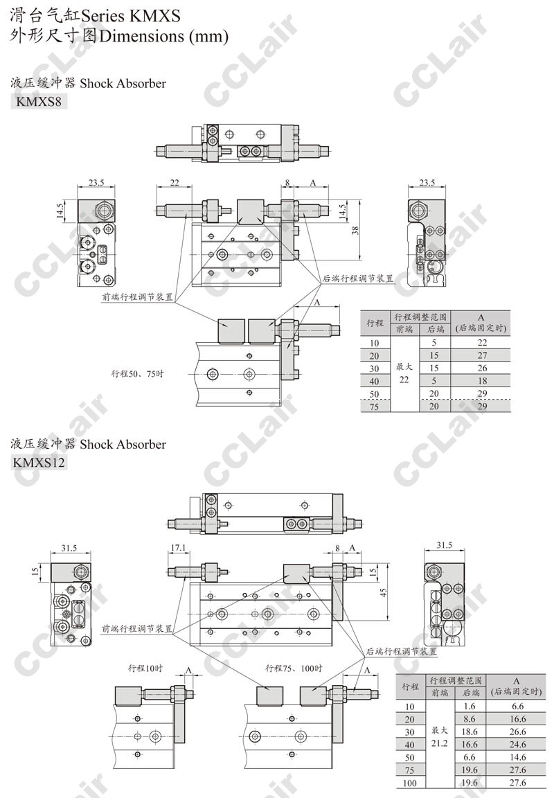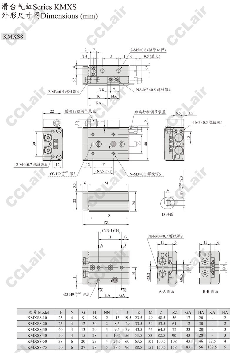 KMXS6,KMXS8,KMXS12,KMXS16,KMXS20,KMXS25,KMXS6-30,KMXS25-150,KMXS20-125,ARK滑臺(tái)氣缸