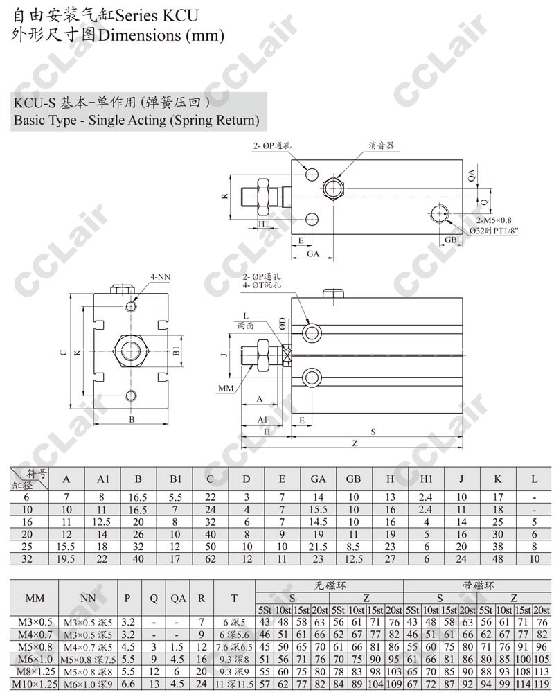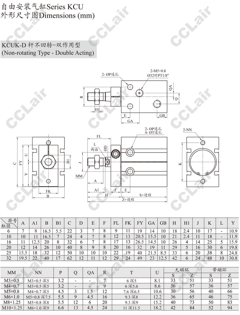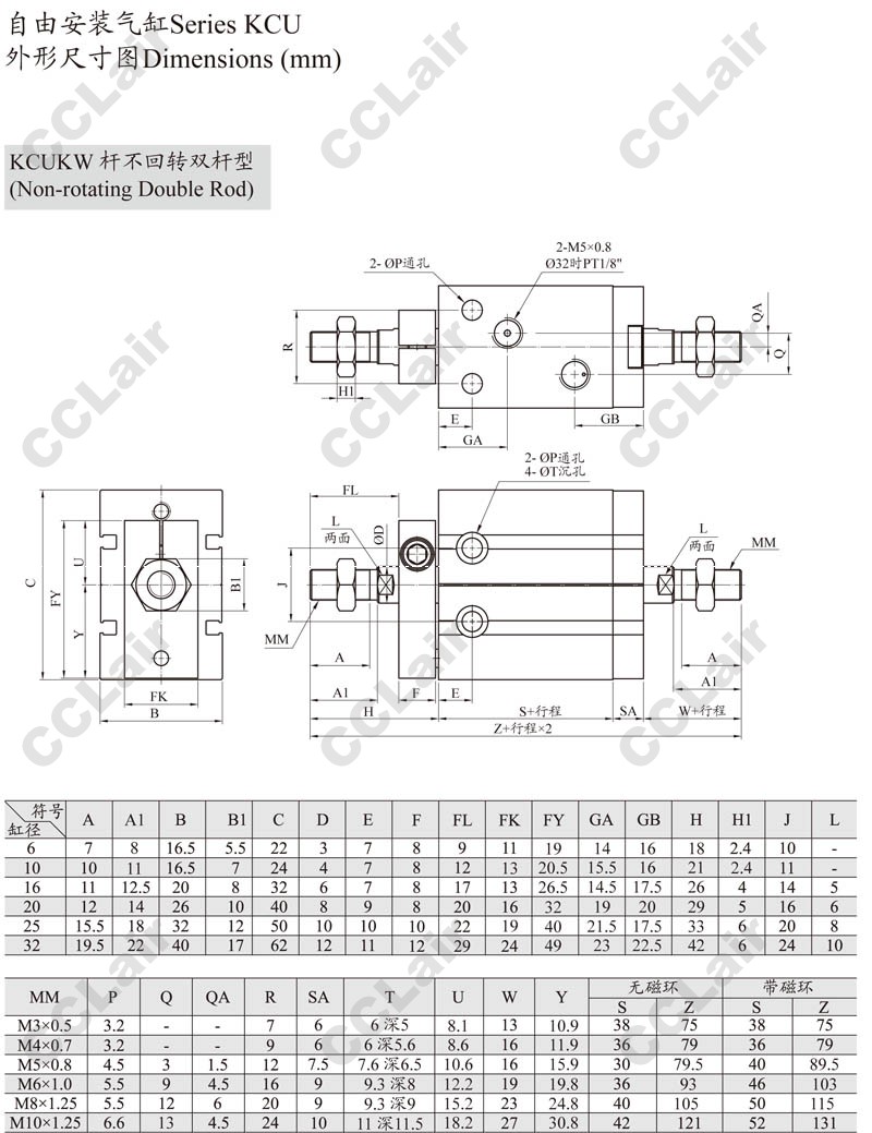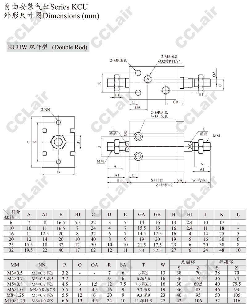 KCUK,KCUW,KCUKW,KCUK20-60,KCUKW16-50,KCUW20-5,KCUKW20-40,KCUW16-10,ARK自由安裝氣缸