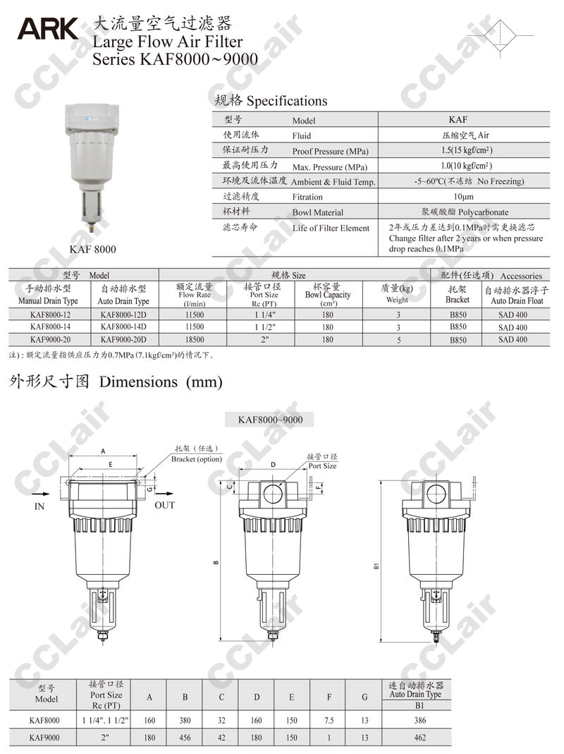 詳細(xì)信息 KAF8000-12,KAF8000-12D,KAF8000-14,KAF8000-14D,KAF9000-20,KAF9000-20D,ARK空氣過濾器