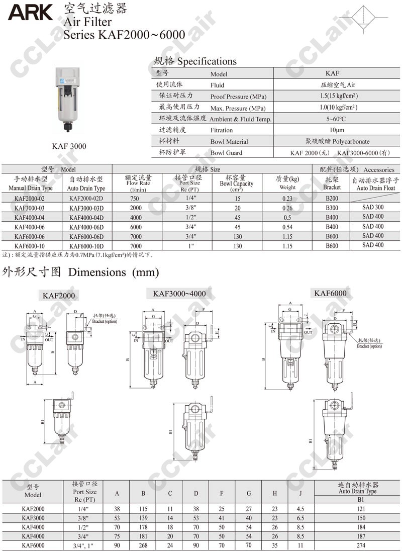 KAF2000,KAF3000,KAF4000,KAF6000,KAF3000-03,KAF6000-10D,KAF4000-06D,ARK空氣過濾器