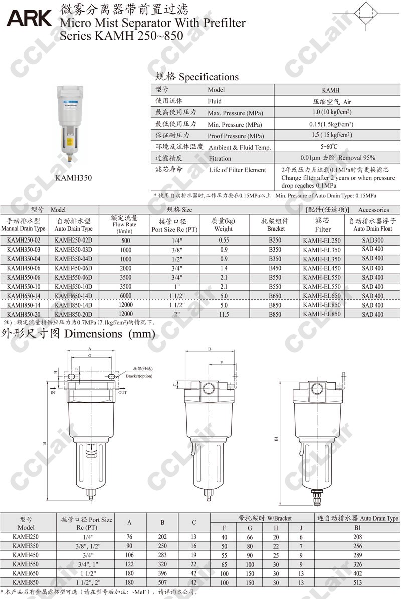 KAMH250,KAMH350,KAMH450,KAMH550,KAMH650,KAMH850,KAMH350-03D,KAMH550-10,ARK油霧分離器 |
