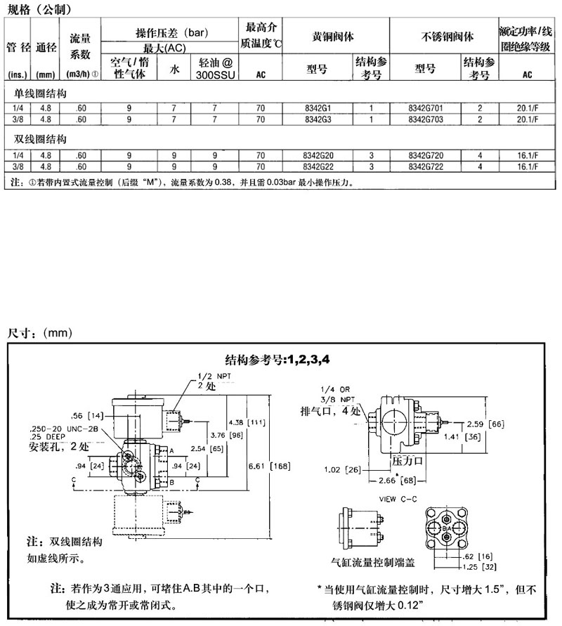 8342G1,8342G3,8342G701,8342G703,8342G20,8342G22,8342G720,8342G722,asco直動式通用電磁閥