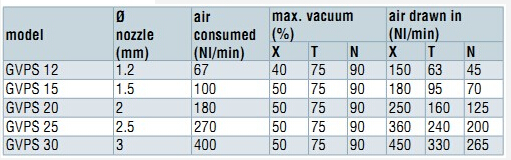詳細信息 GVPS12,GVPS15,GVPS20,GVPS25,GVPS30,COVAL電控真空泵 GVPS系列電控真空泵使用集成閥控制真空生成,這種配置可加快真空泵響應時間。 主要參數(shù)見下表:
