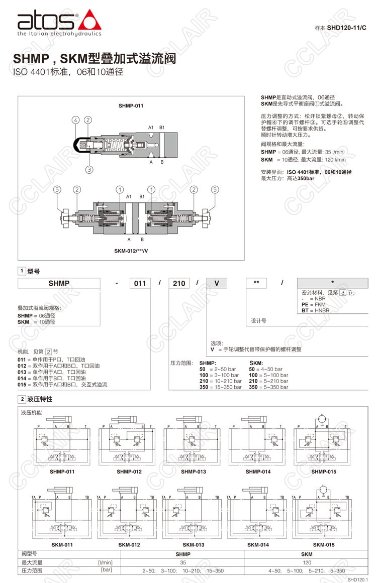 ATOS阿托斯,疊加式溢流閥SHMP-011/50/V,SHMP-011/100/V,SHMP-011/210/V,SHMP-014/100/V,SHMP-014/210/V,SHMP-014/350/V,SKM-013/50/V,SKM-013/100/V,SKM-013/210/V,SKM-013/350/V,SKM-015/50/V,SKM-015/100/V,SKM-015/210/V,SKM-015/350/V