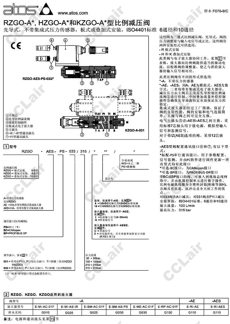 RZGO-AES-BP-033/50,阿托斯ATOSRZGO-AES-BP-033/100,RZGO-AES-BP-033/210,RZGO-AES-BP-033/315,
