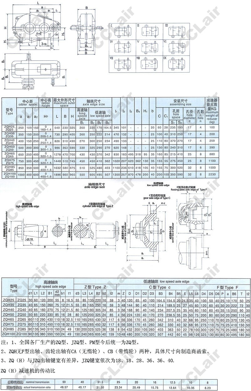 ZQ與ZQH型圓柱齒輪減速器相比,除因齒形不同外,其他均相同.