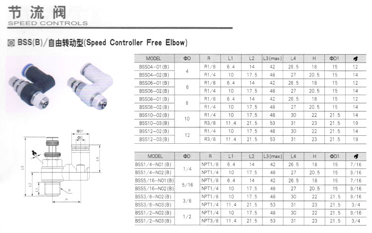 型號: BSS04-01(B),BSS06-01(B),BSS08-01(B),BSS10-02(B),BSS12-02(B),BSS1/4-N01(B),BSS3/8-N03(B)