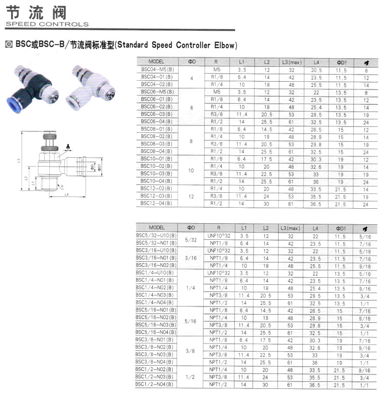 BSC04,BSC06,BSC08,BSC10,BSC12,BSC5/32,BSC3/16,BSC1/4,BSC3/8,BSC1/2,BSC04-M5(B),節(jié)流閥