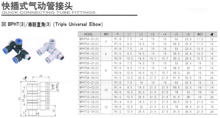 BPHT04-01(3),BPHT06-01(3),BPHT08-01(3),BPHT10-01(3),BPHT12-02(3),快插式氣動管接頭