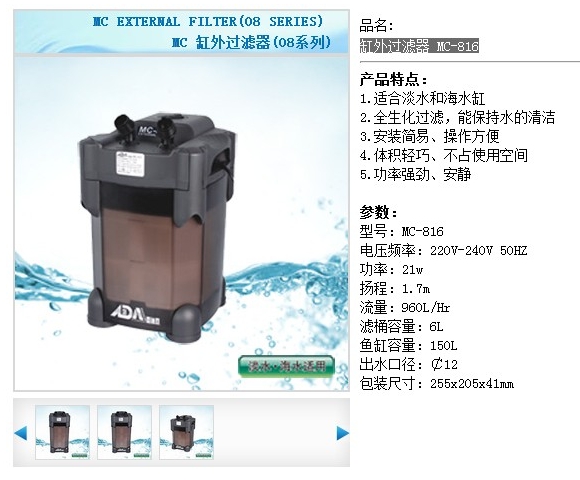 產(chǎn)品: 瀏覽次數(shù):608MC-816,缸外過濾器