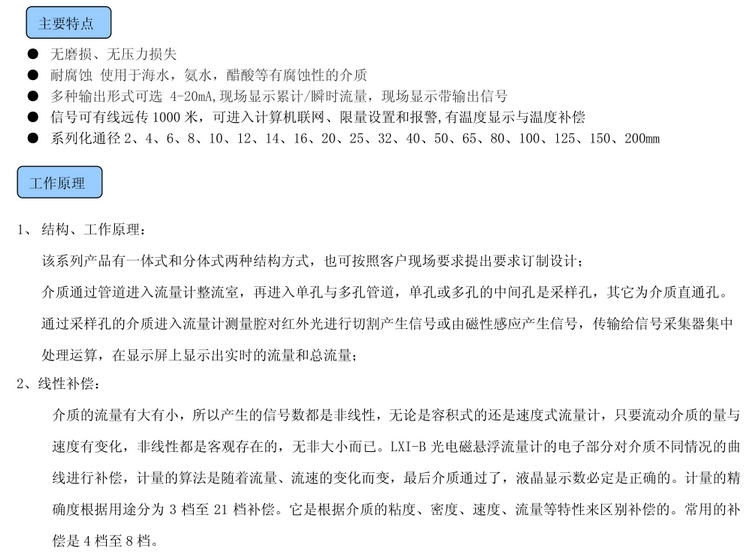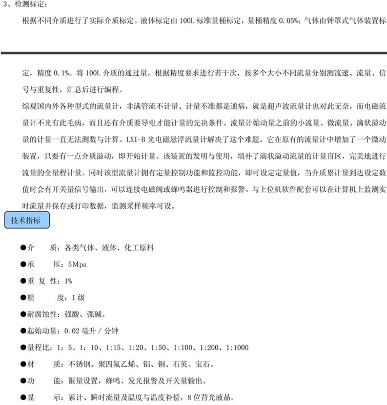 LXI-B光電磁懸浮流量儀目前已廣泛應(yīng)用于化工、石油、醫(yī)療、制藥、機械、科研等領(lǐng)域,適用于各種氣體及液體。