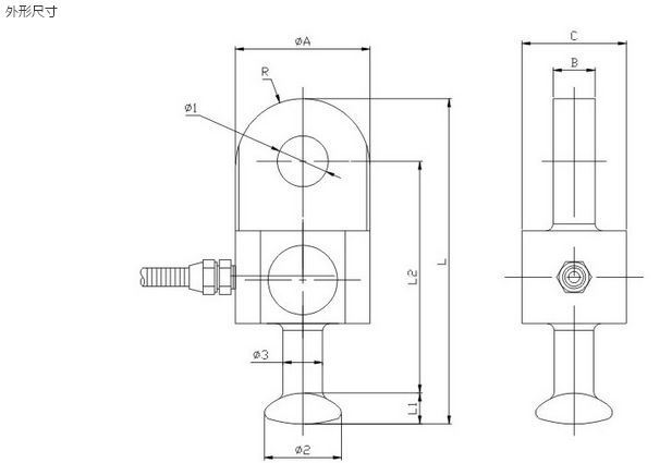 | 量 程 | ФA | B | C | L | L1 | L2 | Ф1 | Ф2 | Ф3 | R |