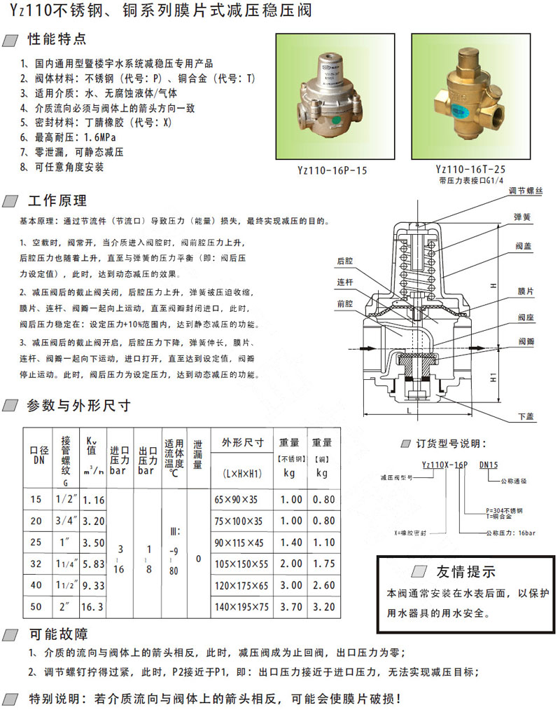 詳細(xì)信息 YZ110X-16P-DN15,YZ110X-16P-DN20,YZ110X-16P-DN25,YZ110X-16P-DN32,膜片式減壓穩(wěn)壓閥