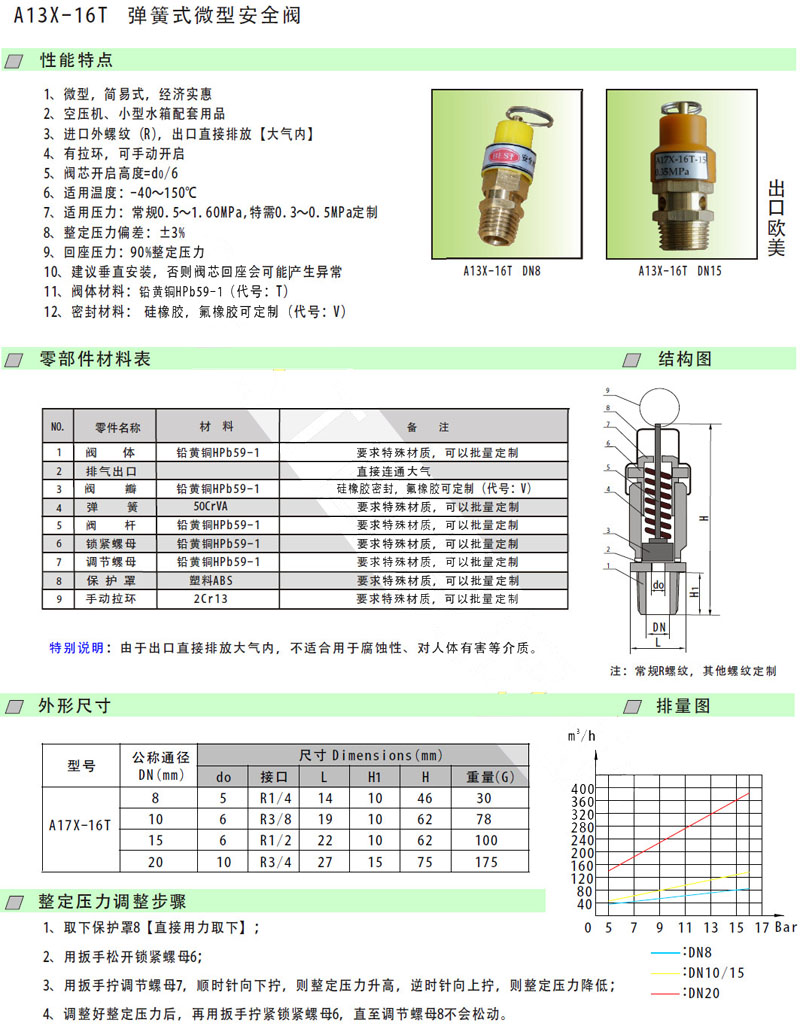 A13X-16T-DN8,A13X-16T-DN10,A13X-16T-DN15,A13X-16T-DN20,彈簧式微型安全閥