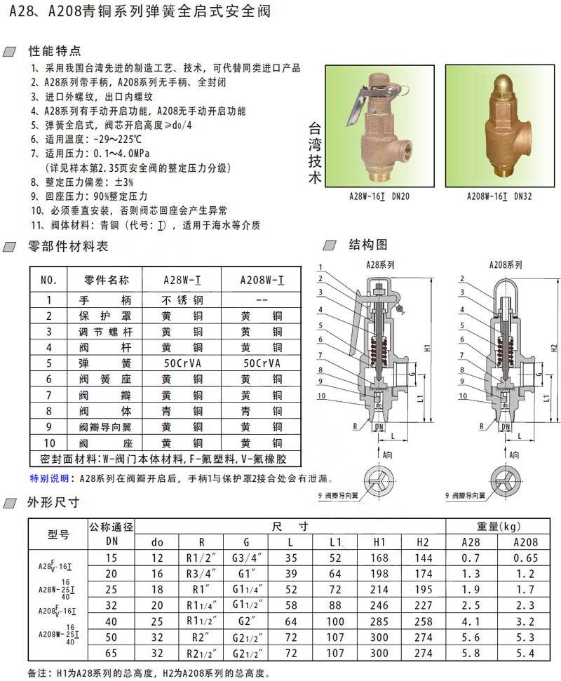 A28F-16,A28V-16,A28W-25,A208F-16,A208W-25,A208W-40,全啟式安全閥