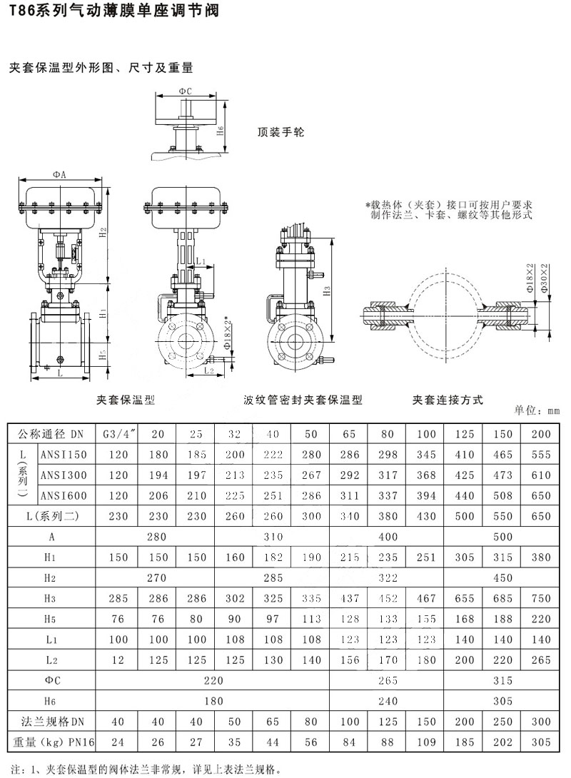 T86-16C,T86-16B,T86-25C,T86-40B,T86-63C,T86-100B,氣動薄膜單座調(diào)節(jié)閥