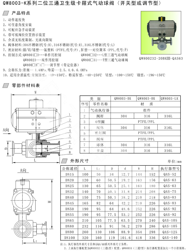 QW8003-BK-DN15,QW8003-RK-DN20,QW8003-LK-DN32,氣動球閥