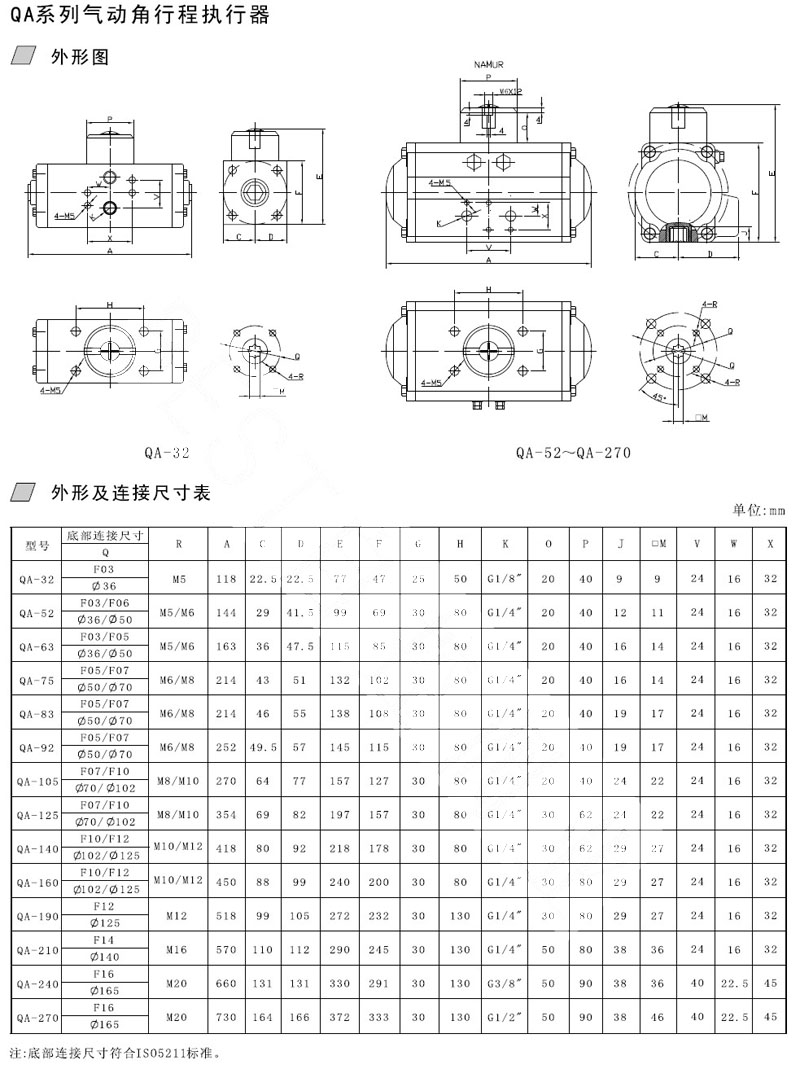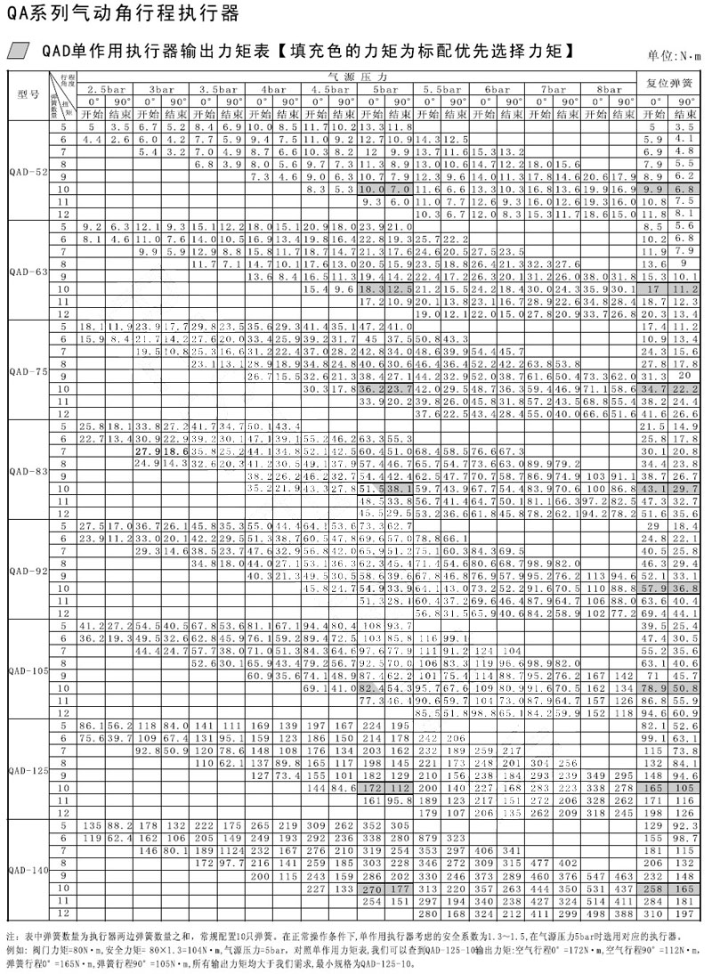 QAD-52,QAD-63,QAS-63,QAS-75,QA-83,QA-92,QA-105,氣動(dòng)執(zhí)行器