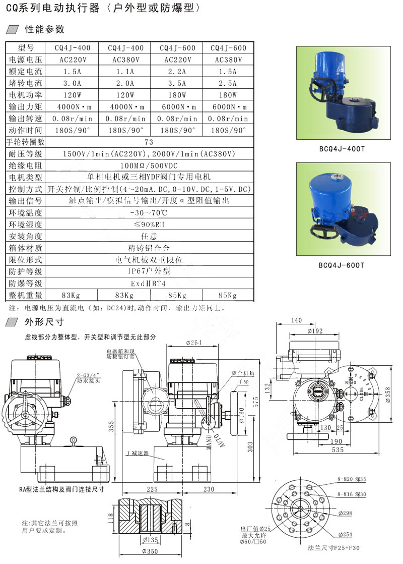 CQ4J-200,CQ4J-250,CQ4J-400,CQ4J-600,BCQ4J-200,BCQ4J-250,電動執(zhí)行器
