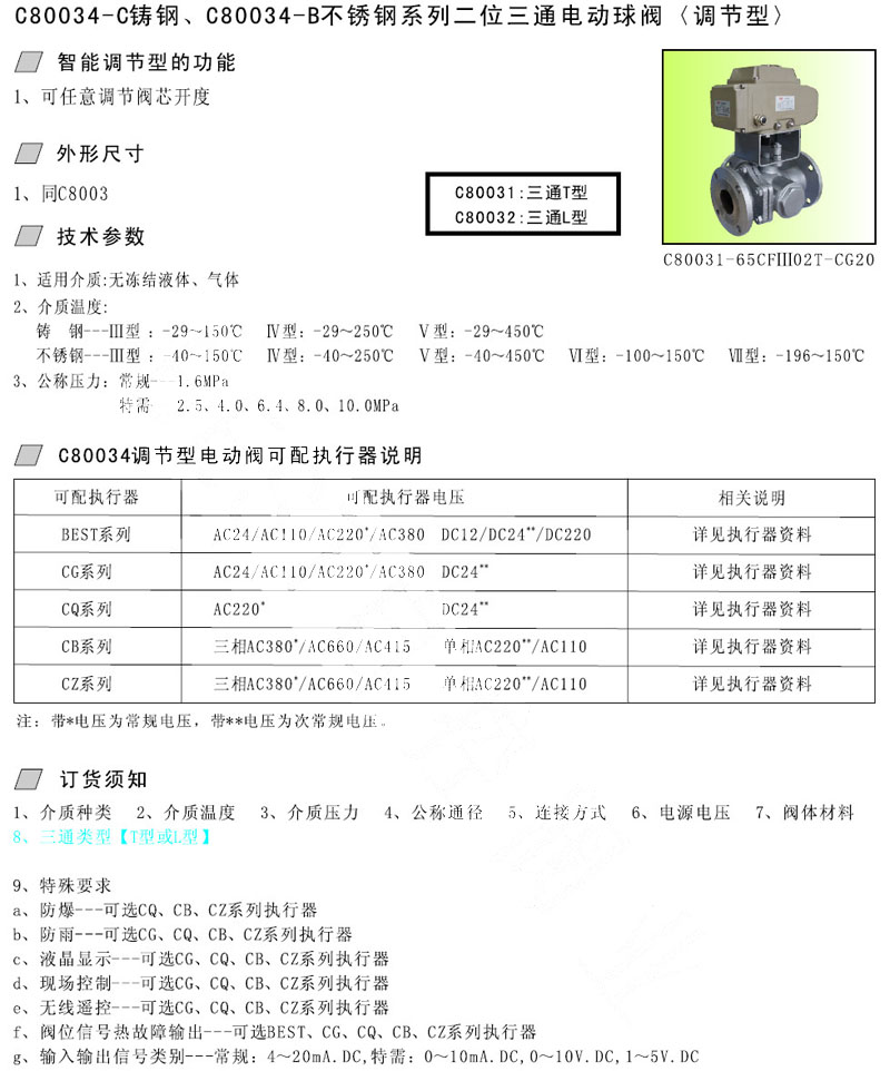 C80034-15,C80034-20,C80034-25,C80034-32,C80034-40,C80034-50,不銹鋼電動(dòng)三通調(diào)節(jié)球閥