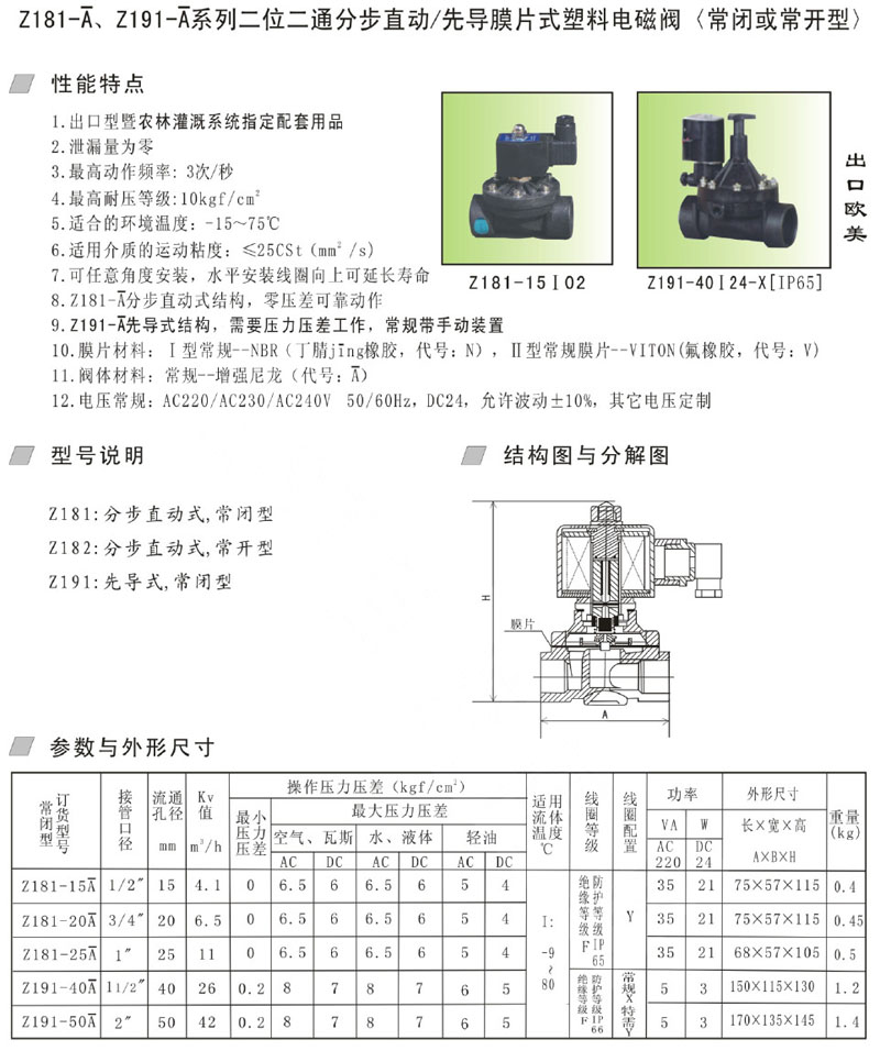 詳細(xì)信息 Z811-15,Z811-20,Z811-25,Z911-40,Z911-50,膜片式塑料電磁閥