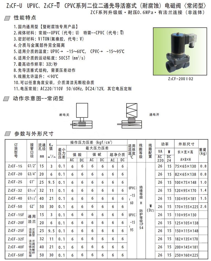 詳細(xì)信息 Z3CF-15,Z3CF-20,Z3CF-25,Z3CF-32F,Z3CF-40F,Z3CF-50F,先導(dǎo)活塞式耐腐電磁閥