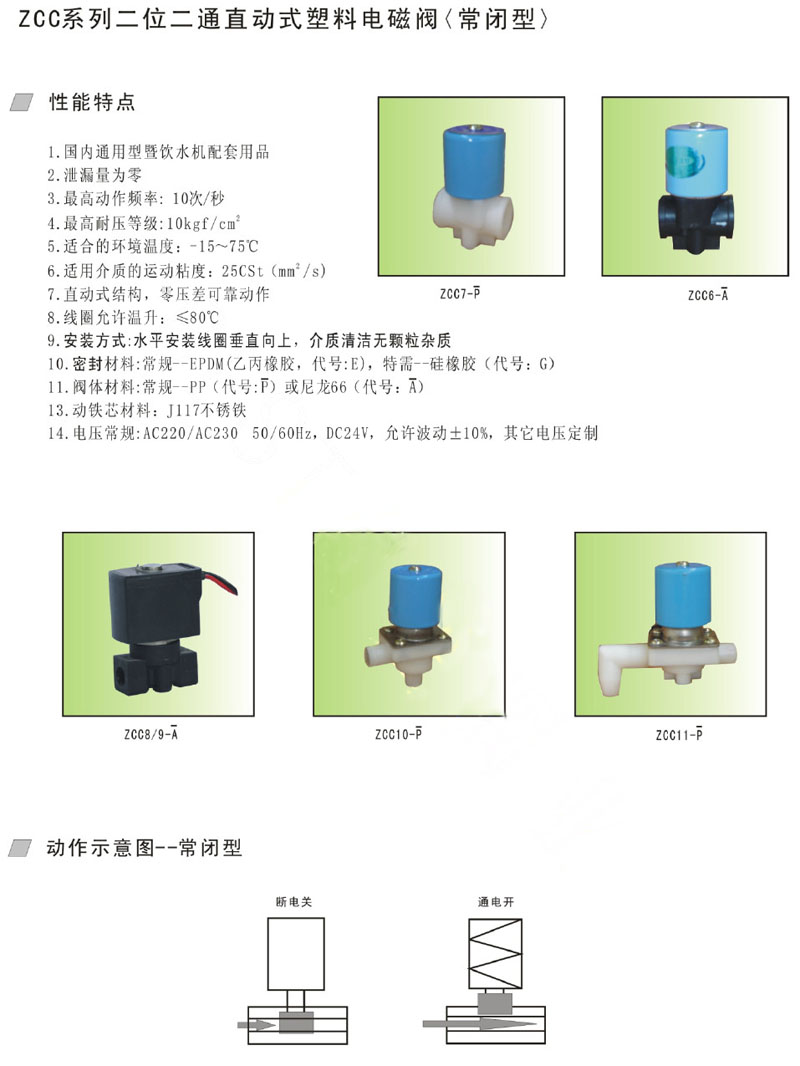 ZCC6,ZCC7,ZCC8,ZCC9,ZCC10,ZCC11,直動(dòng)活塞式塑料電磁閥