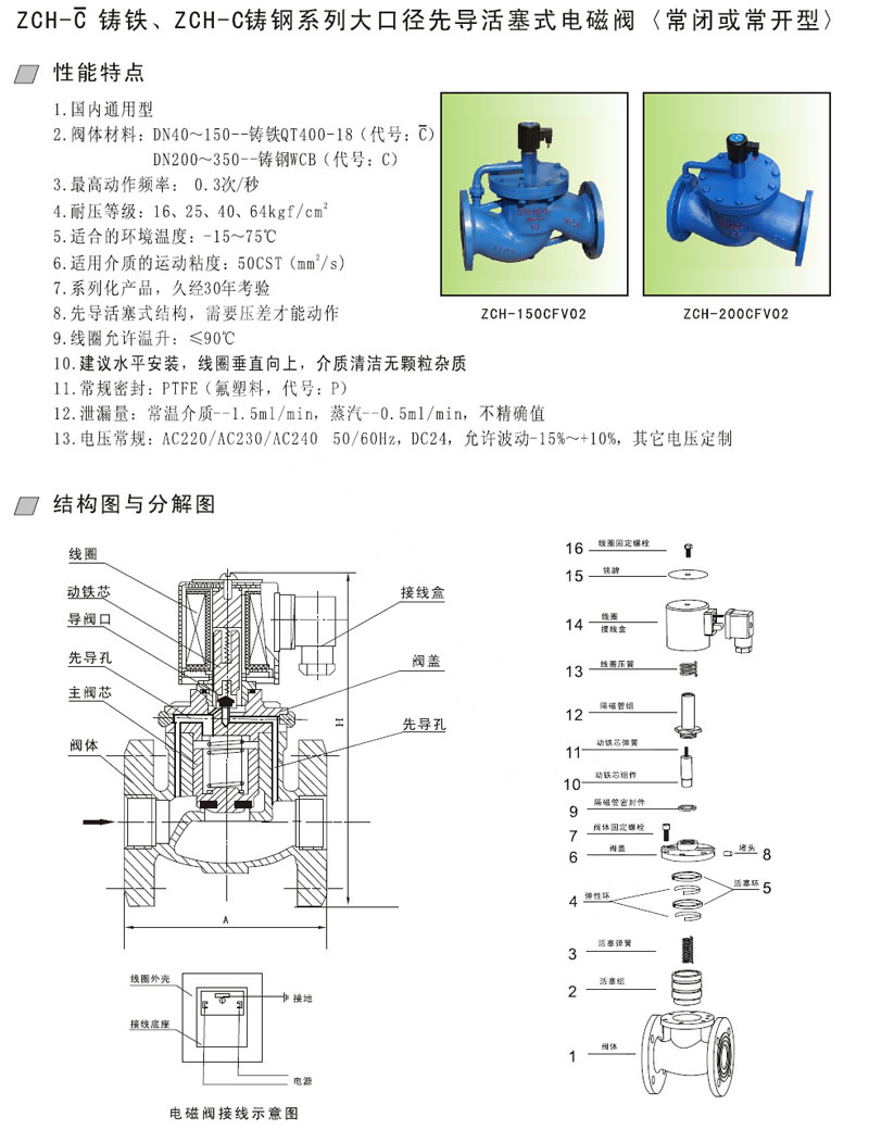 ZCH-40,ZCH-50,ZCH-65,ZCH-80,ZCH-100,ZCH-125,ZCH-150,先導(dǎo)活塞式電磁閥