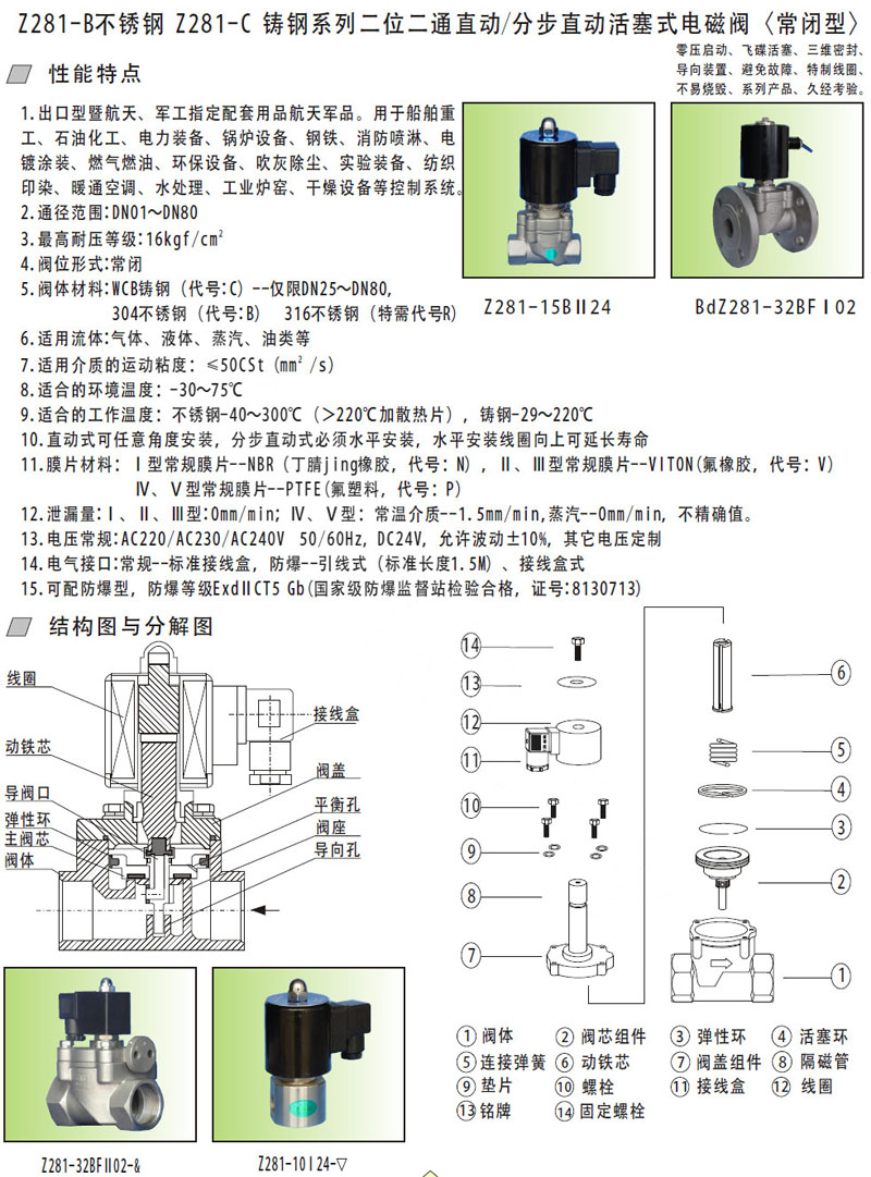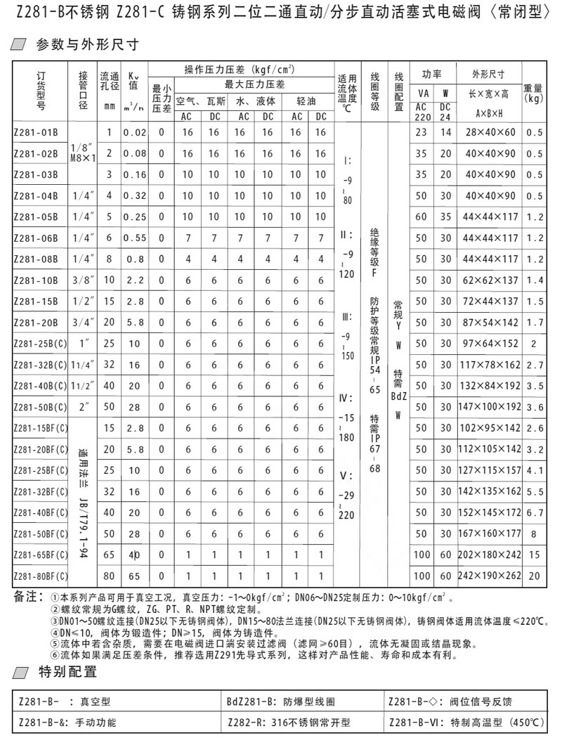 Z281-01B,Z281-02B,Z281-32BC,Z281-40BC,Z281-65BF,Z281-80BFC,直動活塞式電磁閥