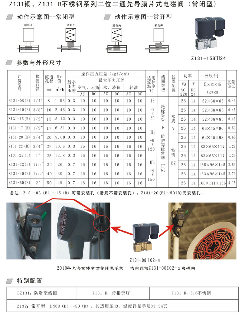 Z131-08,Z131-10,Z131-15,Z131-17,Z131-20B,Z131-22B,Z131-32B,先導膜片式電磁閥