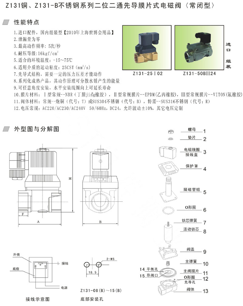 詳細信息 Z131-08,Z131-10,Z131-15,Z131-17,Z131-20B,Z131-22B,Z131-32B,先導膜片式電磁閥