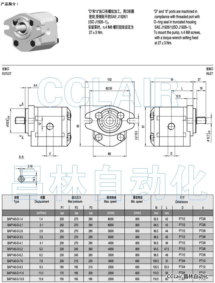 詳細(xì)信息 BAP1A0-D-1.4,BAP1A0-D-2.1,BAP1A0-D-2.8,齒輪泵