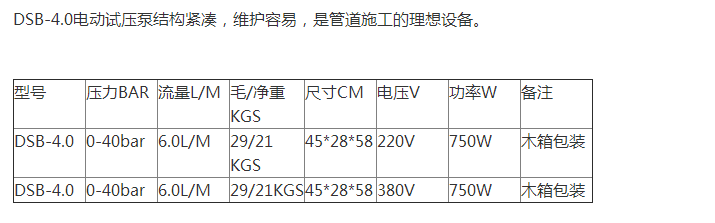 DSB-4.0,手提式電動(dòng)試壓泵 管道電動(dòng)試壓泵