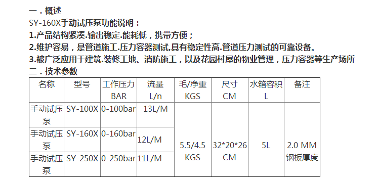手動(dòng)試壓泵 超高壓手動(dòng)泵SY-100X,SY-160X,SY-250X